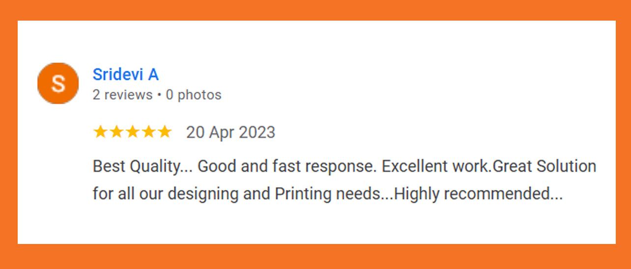 Best Quality... Good and fast response. Excellent work.Great Solution for all our designing and Printing needs...Highly recommended...