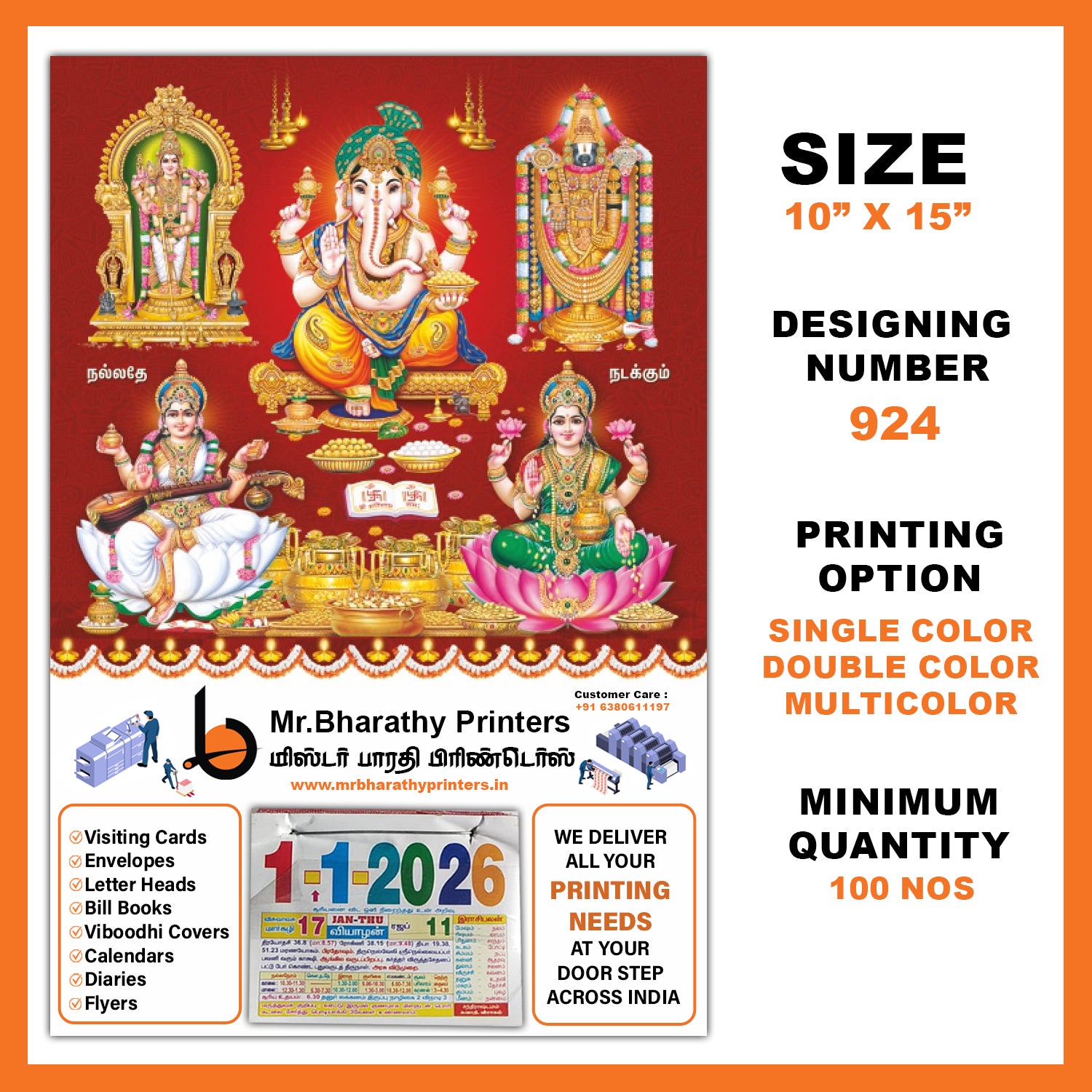 Manufactured in Sivakasi, the hub of premium printing, our calendars are known for quality, consistency, and timely delivery. We accept bulk orders and offer nationwide shipping across India.